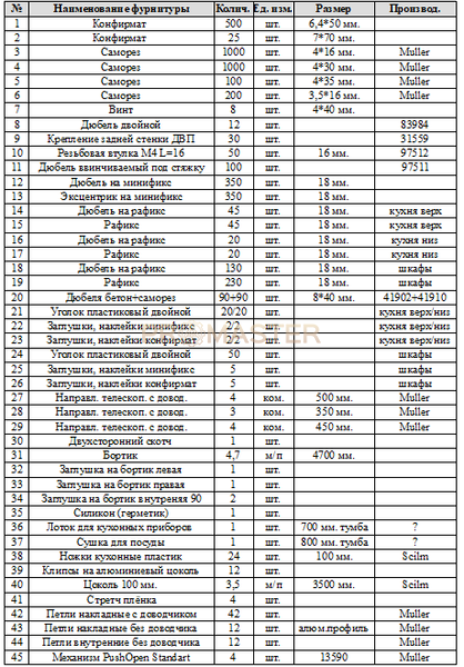 К примеру, часто перечень комплектующих выглядит таким образом: